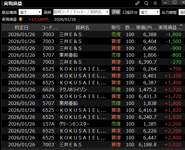 本日の収支 +17,190円