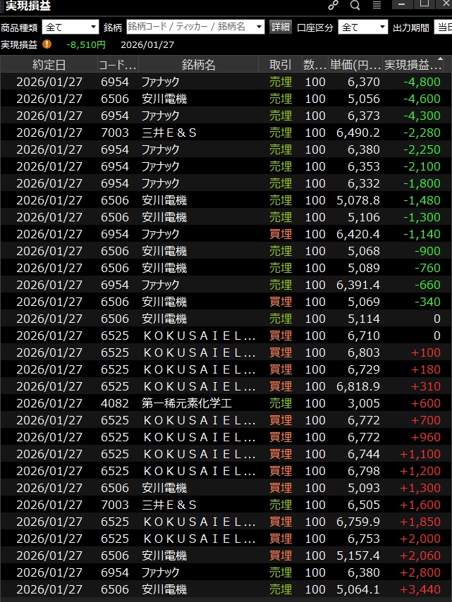 その後、稀元素と安川の売で少し取れて