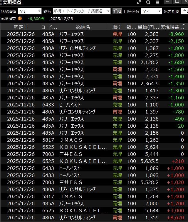 本日の収支 ▲6,300円と罰金▲2,000円程?